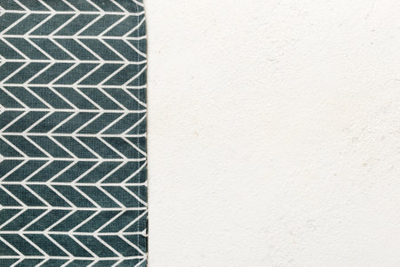 top view with blue kitchen napkin isolated on table background. Folded cloth for mockup with copy space, Flat lay. minimal style.
