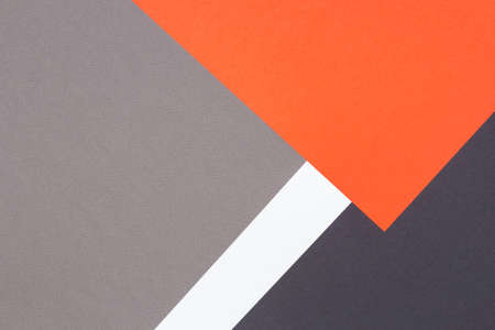 Creative abstract geometric paper background orange, white, light gray, black colors paper