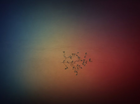 Stylized branches with lush leaves exhibit a beautiful color gradient, reflecting shades of green and pink. This artistic representation captures a serene atmosphere.