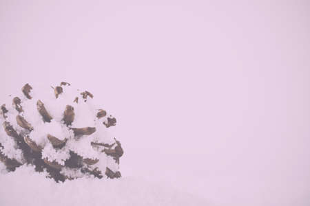 Pine cone covered in soft white fluffy snow Vintage Retro Filter.