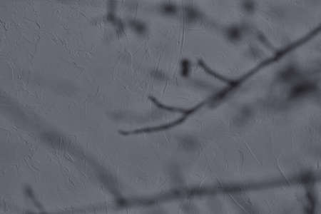 Shadow of leaves on gray concrete wall texture background