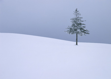 Lonely tree on a field in the winter in the bavarian forest
