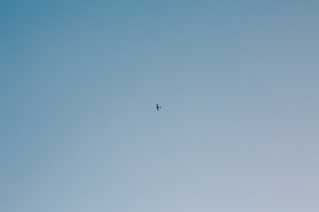 airplane flying on the blue sky at the sunny day. Holiday, busines trip, travel conception