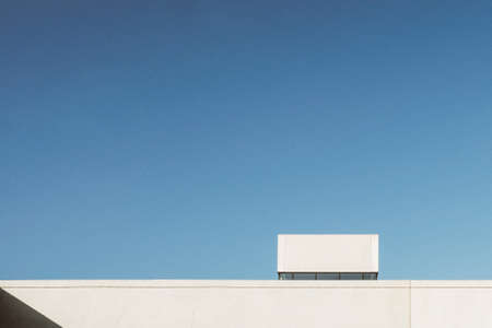 A clean and modern architectural photo capturing a concrete facade in a minimalist style, set against an expansive sky, perfect for design and urban themes.