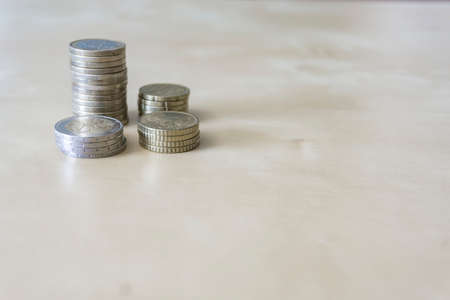 Coins on a table. Business concept. Coins stacked in ascending order.