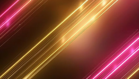 Bright yellow light streaks glow and move diagonally across a dark background. Clear details and vibrant color...