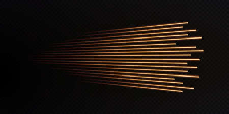 A dynamic abstract depicting numerous bright streaks of orange and yellow light rapidly moving from left to right across a dark, almost black background. The lines are sharp and distinct at the leading edge, blurring into a luminous trail, conveying a strong sense of speed and motion. The intense glow of the light creates a powerful visual impact, suggesting concepts of velocity, technology, or energy transfer.