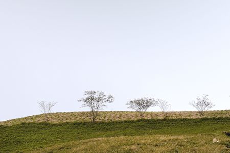 Minimalist peaceful outdoors landscape with negative space and nature elements.