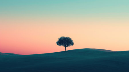 Abstract illustration minimalist landscape, alone tree in clear nature landscapeAbstract illustration minimalist landscape, Alone tree in clear nature landscape, Generative AI illustration