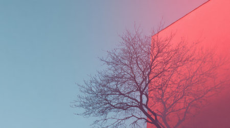 a photo of a white wall and a large tree, captured with a nikon d750 camera. the image showcases a color field minimalism style, with shades of crimson and beige. the composition exudes contemplative minimalist abstractions, combining minimalist figuration. the use of a samyang af 14mm f2.8 rf lens adds to the overall aesthetic, with a palette of light gray and bronze tones. ai generated