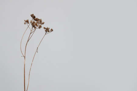 Minimal composition with beige dried flower on light grey background