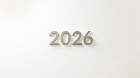 The year 2026 concept with white volumetric numbers on a minimal blue surface. A clean and modern design for a New Year celebration or future planning.
