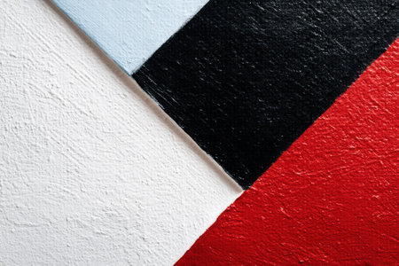 Abstract geometric wall texture background. Old white and gray color cement wall painted with diagonal red stripes