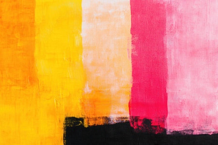 Vibrant abstract painting with bold yellow, pink, and black stripes for modern decor and artistic inspiration