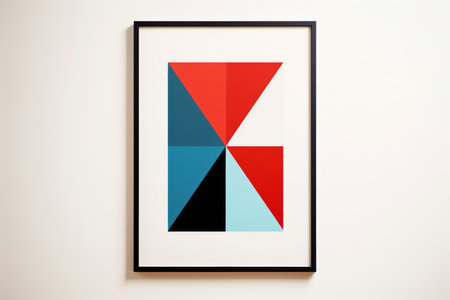 an abstract art print on a wall with a black frame