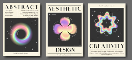 Trendy poster or cover template in aesthetic style. Modern designs with y2k aure holographic elements. Creative template for business, presentation, posters, banner and more