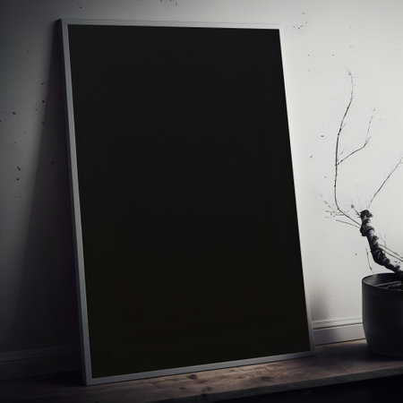 Black and white photo frame on the table with a plant in a pot