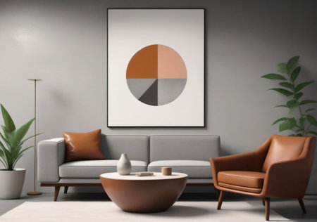 Modern living room interior with armchair, coffee table and poster on wall