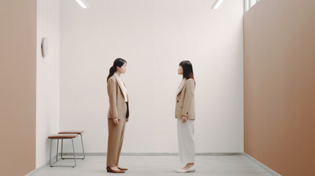 Women business competition. Ambition aspiration opposition. Female leaders standing back to back.