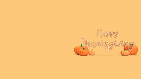 Happy Thanksgiving Day text message with collection of autumn pumpkins with wreath on white orange background. Greeting card.