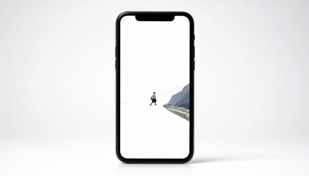 Smartphone mockup with mountain landscape on screen isolated on white background