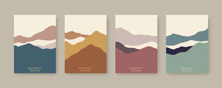 Collection of Nordic style cover template, designed with abstract mountain landscapes in earth tone