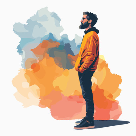 Hipster man with beard and mustache in orange jacket. Vector illustration