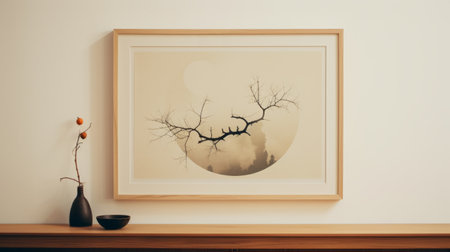 Poster frame mockup on modern minimalist japanese style interior, Generative AI