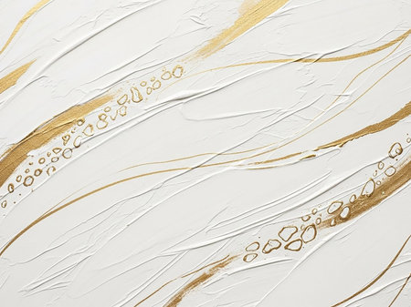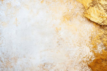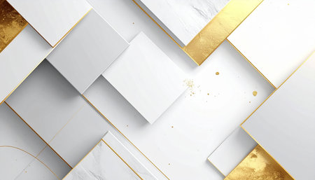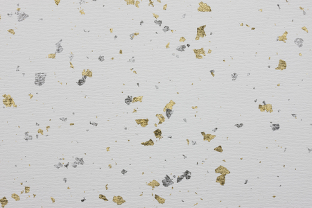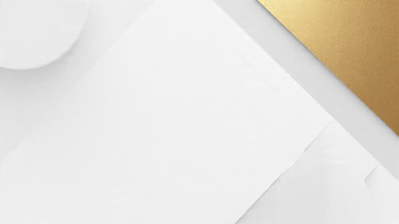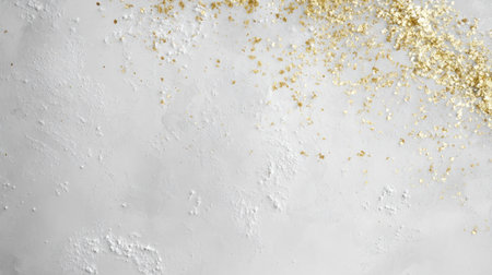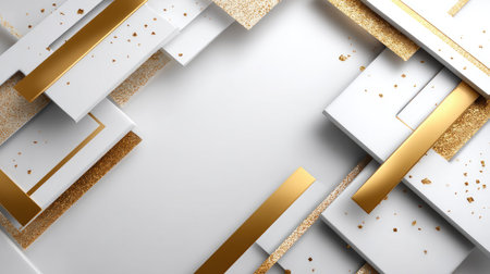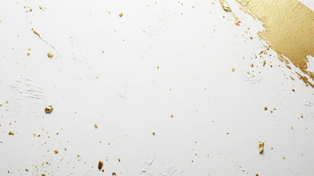 Elegant white and gold abstract background with scattered foil pieces for luxury and minimalist designs