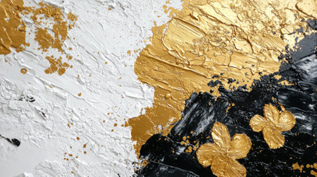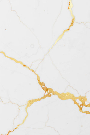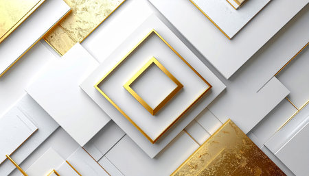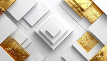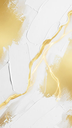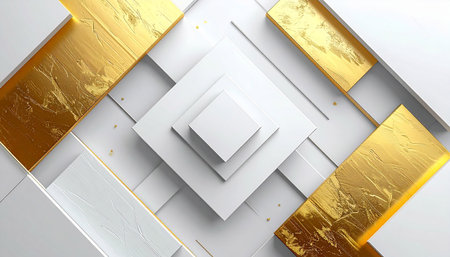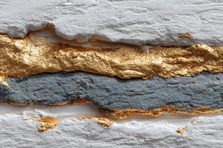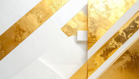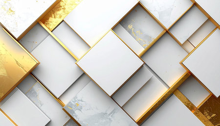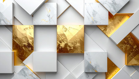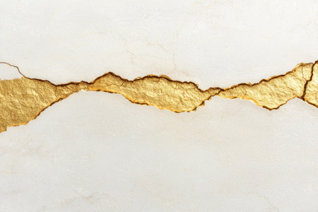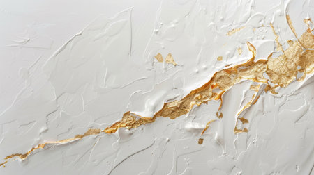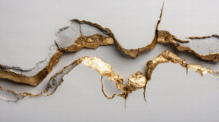 3D rendered abstract background featuring a cracked surface with gold and white contrasting elements. Luxurious and stylish.
