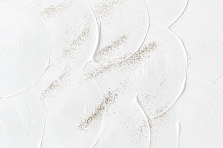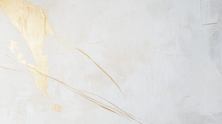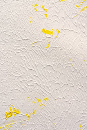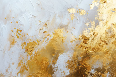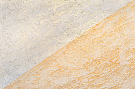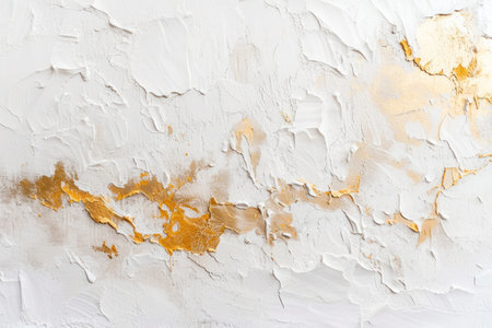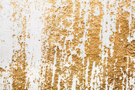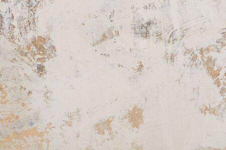 White and golden messy wall stucco texture background. Decorative wall paint.