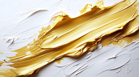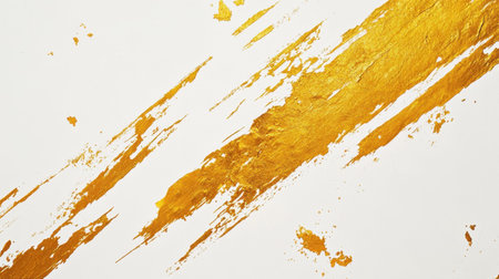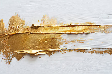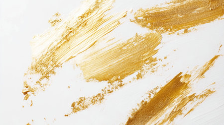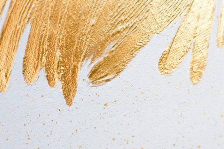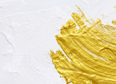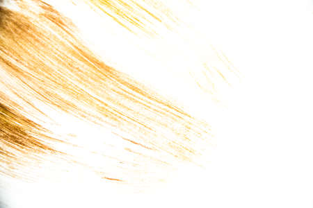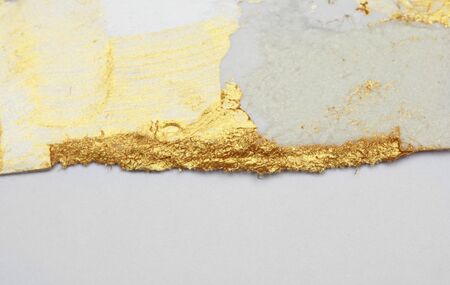 Gold paint brush stroke on white paper background. Abstract gold glitter texture