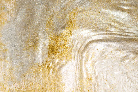 Liquid marble canvas abstract painting background with bronze and gold dust and glitter and sparkling waves.
