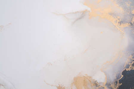 White paper sheet texture background. Flowing colors. Golden and silver fluid color pattern.