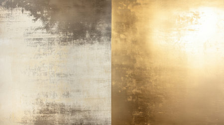 White with gold concrete wall texture or grunge style background. Gold texture background, cement wall. Old gold plaster wall texture yellow background