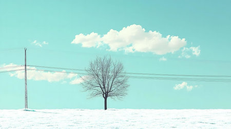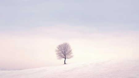 Superb minimalism tree on landscape winter in pastel color Created with Generative AI technology.