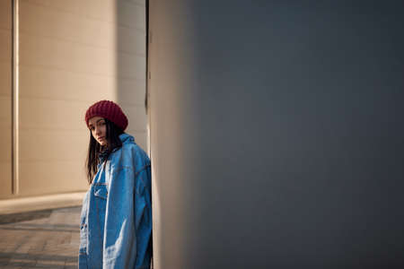 teen boy or student on street wall with copy-space