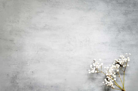 White flowers bouquet on pastel gray background. Flat lay, top view.