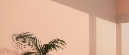 Blurred shadow from palm leaves on the light pink wall. Minimal abstract background for product presentation. Spring and summer.