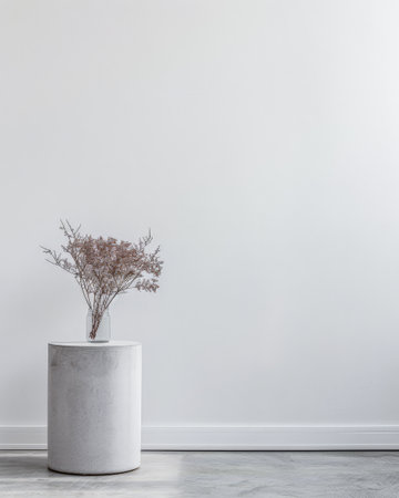 A minimalist indoor space showcasing smooth concrete walls and carefully arranged potted plants, reflecting modern design trends and tranquil aesthetics ideal for home interiors.