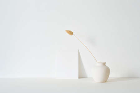 Fashionable stock background - flowers in a vase on a white background. Women's wedding or greeting background with copy space.