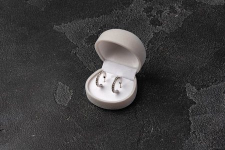 This stunning image features elegant silver earrings adorned with brilliant diamonds, perfectly placed on a luxurious green marble surface, exuding sophistication.