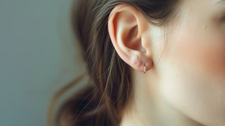 Stylish ear adorned with chic, minimalist hoop earrings, focusing on their fashionable design and understated elegance
