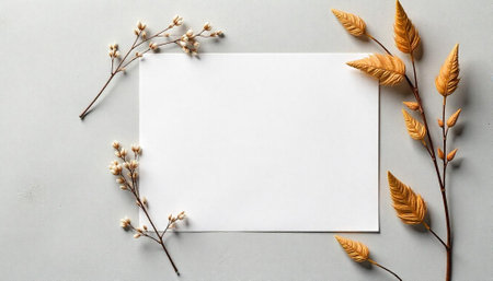 Elegant blank card surrounded by botanical elements mockup design