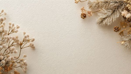 Soft seasonal backdrop with refined holiday accents and open space.