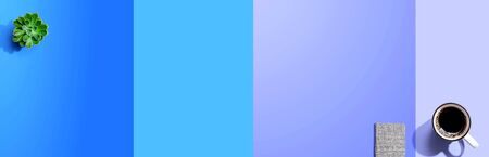 White desk with copy space. Home office. Office supplies. View from above. Handmade paper. Panorama.
