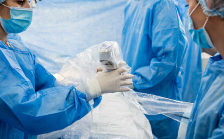 The videographer shoot the surgeon and assistants in the operating room with surgical equipment. Medical background