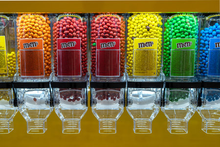 M&M'S different colors candies at store. M&M'S stand in the supermarket with the inscription Create your colour mix. Minsk, Belarus, 2022