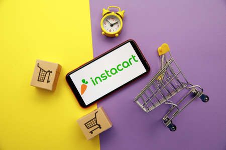 Tula, Russia - January 28, 2020: Instacart logo on iPhone display