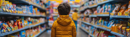 Colorful products arranged neatly on grocery store shelves, providing a vivid and inviting scene of a well-stocked supermarket